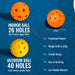 The set includes 2 fiberglass pickleball paddles and 4 durable pickleballs—2 outdoor balls with 40 holes for better wind performance and 2 indoor balls with 26 holes for a softer feel.