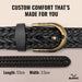 [PREMIUM WOVEN LEATHER DESIGN] 🧵 Crafted with high-quality woven leather, this belt offers a stylish and durable look that complements both casual and formal outfits.